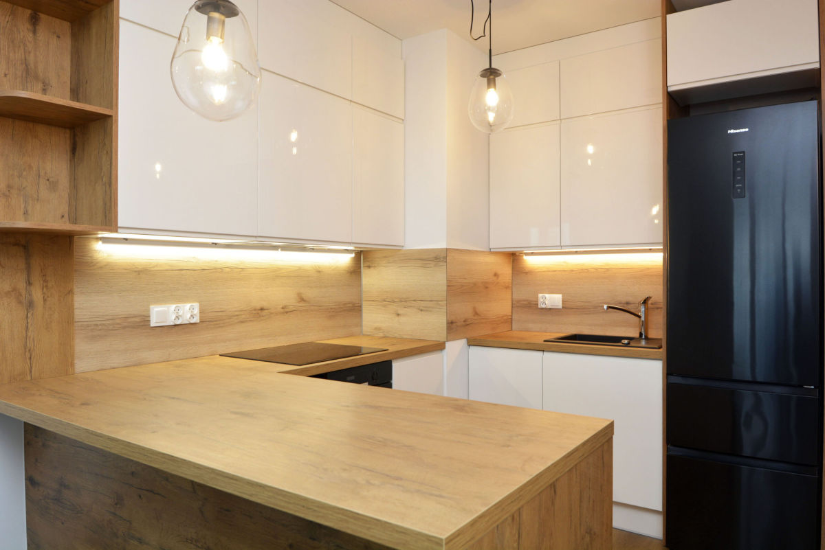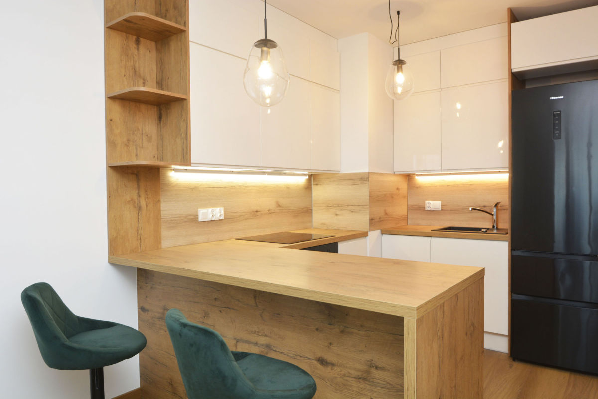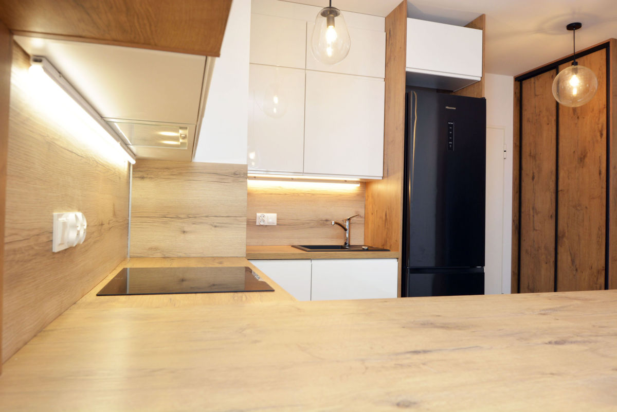 - sprzęt AGD: lodówko-zamrażarka, zmywarka, płyta indukcyjna, piekarnik - wszystko, co niezbędne do komfortowego gotowania