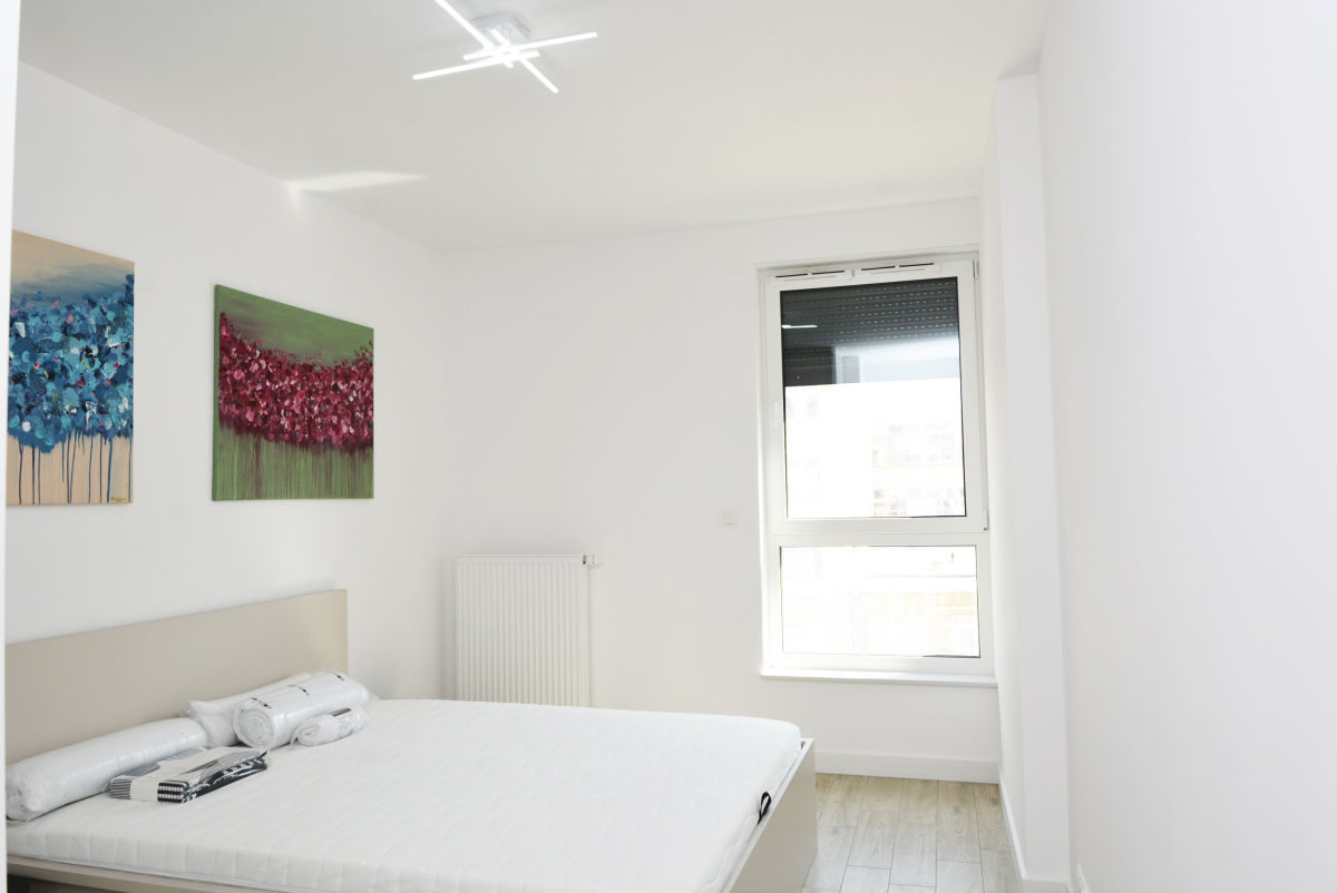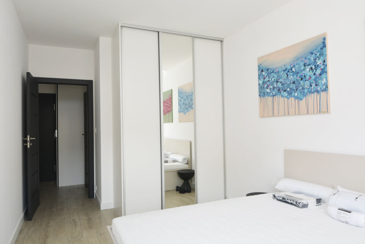 - Sypialnia - wygodne łóżko 160x200 cm, duża szafa z lustrem, stoliki nocne, komplet pościeli