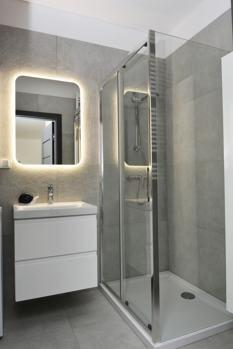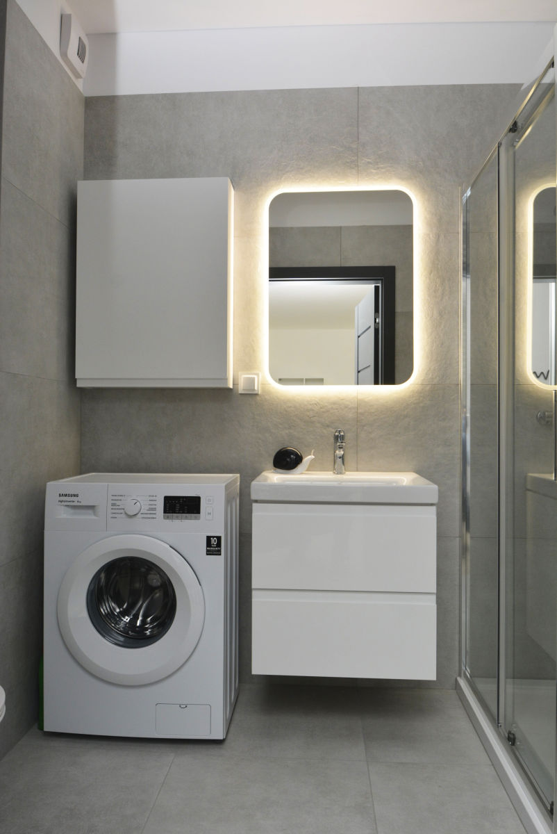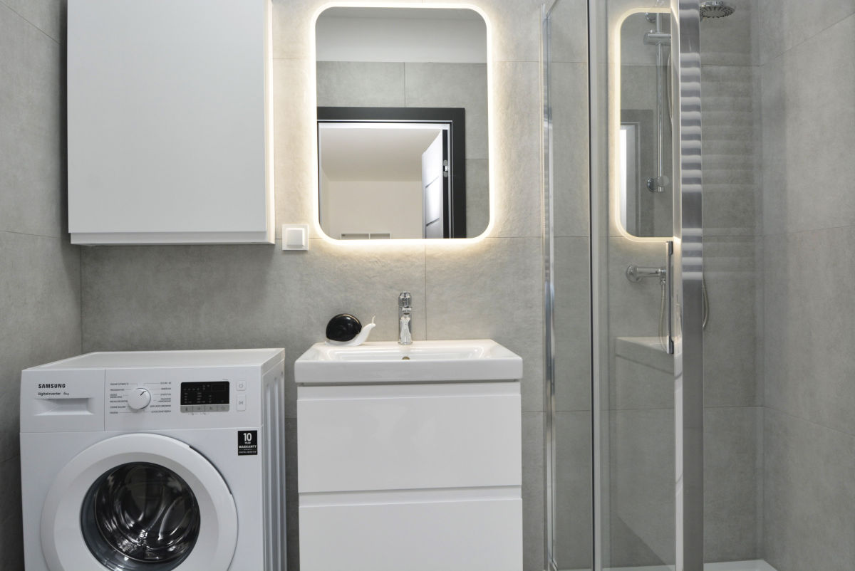 - Łazienka - prysznic, pralka, podświetlane lustro, nowoczesny design